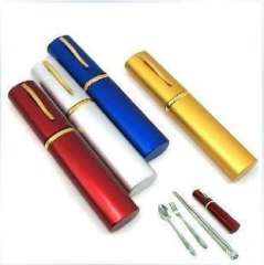 Aluminum box stainless steel portable chopsticks portable tableware folding chopsticks spoon fork tableware three - piece