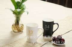 源头厂家陶瓷水杯 经典亚光数字盎司杯 情侣杯 1314对杯 定制logo