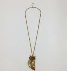 古色古香的铜合金猫头鹰下垂项链与石头