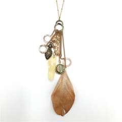 羽毛和魅力吊坠多层项链