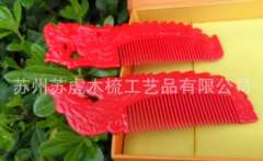 厂家直销黄杨木喜庆对梳 实用梳头不伤发雕刻红色木梳子正品特价