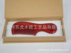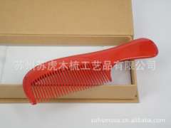 【批发供应】XQ18501有柄圆把漆艺黄杨木梳 天然环保 红色梳子