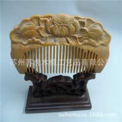 苏虎特价厂家直销两面雕刻荷花木梳子 手感好无静电优质木材超值