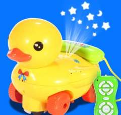 工厂直销 早教益智玩具触摸反映万向遥控声光投影大黄鸭故事机