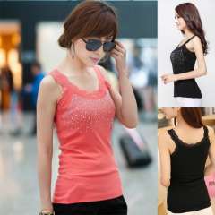 Lace vest | Slim short blouse hot drilling bottoming shirt sling 92G