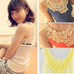 Fashion cute daisy lace t-shirt vest T-shirt | summer Slim short-sleeved shirt T-shirt 99G