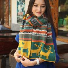 Korean version of the deer Christmas wool scarf | double - sided multi - color thickening women 's shawl | wool scarf