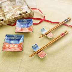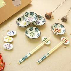 Japanese Floral Sushi Dishes Dishes Dishes Set Gift Set | Floral Hand-painted Chopsticks Seasoning Dishes | Chopsticks Stand 690G