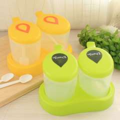 '3068' two-cell plastic seasoning set with a spoon with a base creative spices cans 142G