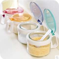 [3723]Colorful seasoning cylinder kitchen glass seasoning bottle seasoning tank piece with cover seasoning box single loaded 247G