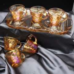 Home Tulip Cup 7pcs Set Combination Pallet Amber Plated Glass Plating Water