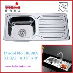 单碗带排水板厨房水槽,酒吧水槽,不锈钢水槽,洗涤槽(8038A)