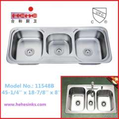以上柜台三碗不锈钢厨房水槽(11548B)