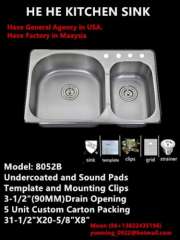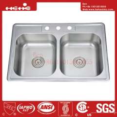 33'X22'不锈钢双碗碗顶厨房水槽