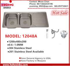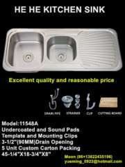 厨房水槽,水槽,304不锈钢水槽,手工水槽,双碗排水板11548A