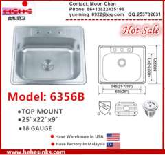 2522 Topmount单碗不锈钢厨房水槽(6356)
