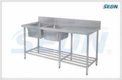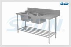 手工商用不锈钢双碗Splashback水槽长凳(MF1010)