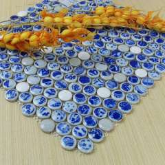 11 pieces for sale | Factory Outlet tile | Vintage blue and white circular high temperature porcelain mosaic 041