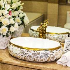 Above counter basin bathroom sink oval meijia ceramic gold European style wash basins | Distribution supply 689#
