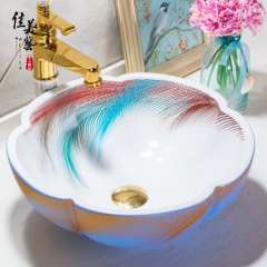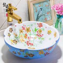 Meijia Chinese toilet basin wash wash basin in Jingdezhen art basin above counter basin petals 1101