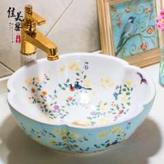 Meijia Chinese toilet basin wash wash basin in Jingdezhen art basin above counter basin petals 1076