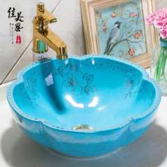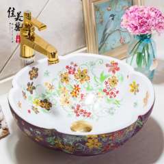 Meijia Chinese toilet basin wash wash basin in Jingdezhen art basin above counter basin petals 1116