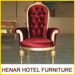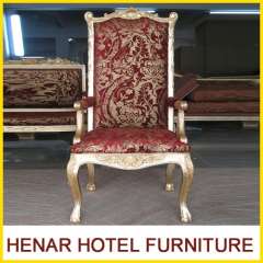 Antique Luxury Hotel Furniture Wooden Carving Red Fabric Throne Chair