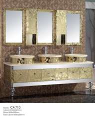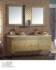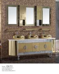 Luxury Stainless Steel Golden Bathroom Cabinet with Two Basins on The Countertop