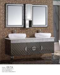 Modern Stainless Steel Bathroom Cabinet with Double Diamond Basin on The Countertop