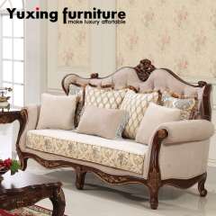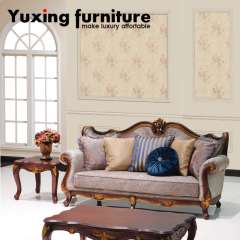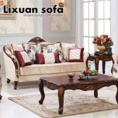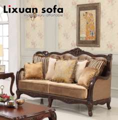 Classical Fabric Sofa Set with Antique Wood Frame for Home