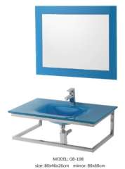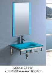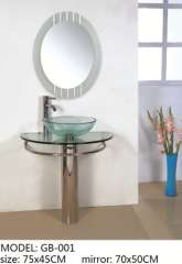 Tempered Glass Basin Vanity with Silver Mirror