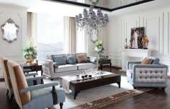 美国古色古香的沙发设置与木制框架&古典沙发为客厅设置
