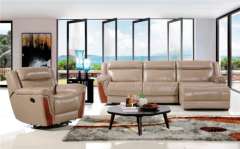米色颜色皮革手动躺椅沙发