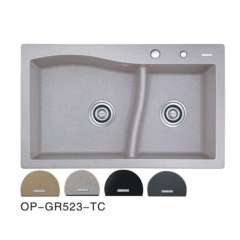 Coffee Quartz Stone Double Bowls Kitchen Sink (OP-GR524-TC)