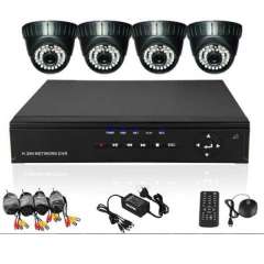 4 CH相机套件使用4颗480TVL室内半球红外摄像机和4路D1 DVR录像机的安全系统