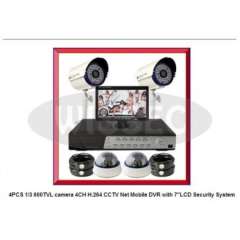 4颗1/3 600TVL摄像机4路H.264央视网移动硬盘录像机7'LCD安全监控系统