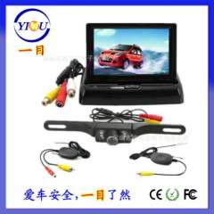 4.3 inch folding car display + wireless long license plate Rear view camera = 2.4G car reversing system