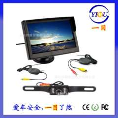 5 inch car display + wireless long license plate infrared night vision CCD reversing camera + wireless receiver