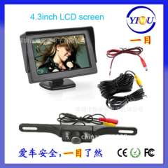 4.3-inch car display + long license plate reversing rear view camera infrared night vision HD car visual suit