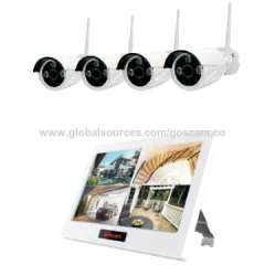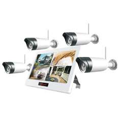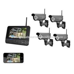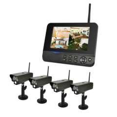 Home surveillance system with 4 HD wireless cameras and LCD monitor, remote view with smartphone