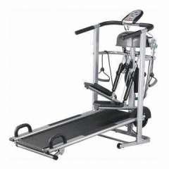 Treadmill with 3 level manual elevation, stepper, twister, massager, push-up bar and pulley