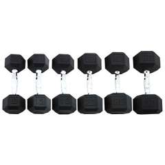 Black hex rubber dumbbell weights set for sale