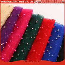 mesh fabric polyester and lace fabric with beads for stage cloth and decorative fabric