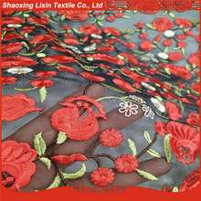 The chiffon fabric in 3d flower lace embroidered fabric with high quality
