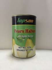 梨两个在轻的糖浆的罐装雪梨