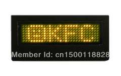DHL免费送货,LED信息标牌徽章,20个/很多,100%的制造商出售黄色颜色7 * 29像素,3.6 * 1.4 *0.3英寸
