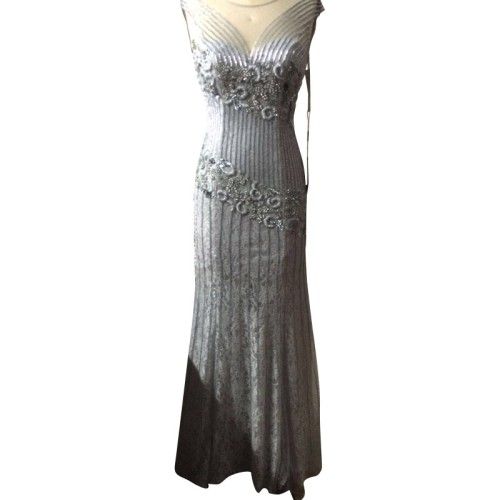 Ladies exiquisited evening dress made by 100%polyester chiffon and lace fabrics with sequins and beads hand sewn,vase shape with lining,wearing for party or banquet,elegant styling,slim designing,high quality fabrics and sequins,carefully sewing.