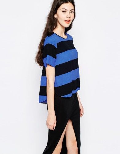 2015 Fashion Women Stripe Boxy T-shirt (SW-L0247)