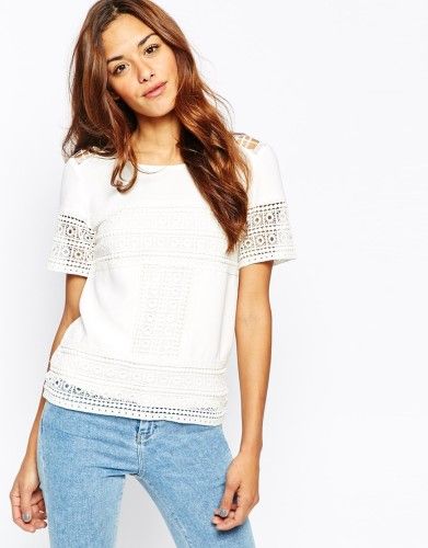 2015 Fashion White Women Crochet T-Shirt (SW-L0252)