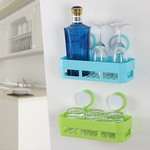 强力吸盘浴室长方形置物架 | 壁挂卫生间收纳架子多用卫浴储物架